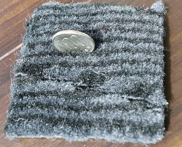 他のサンプルが全て厚み10mm以上あるので、厚みが7mmではやはり薄い感じがします。100円玉が全く沈みませんでした。質感はこちらもウールのような肌触りです。価格は最も経済的で、汚れ防止が目的だけの方ならおススメです。