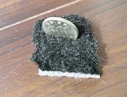 こちらも肌触りはウールのような感じです。ESラグジュアリーの方は厚みが14mmある一方で目付量は3つの中で一番軽くなっており、かなりフワフワしている感じです。100円玉も一番沈み込んでいます。